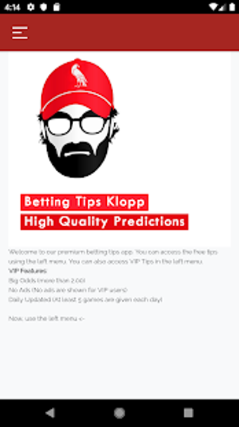 Bahis İpuçları Klopp, Android için 'Spor' kategorisinin bir parçası olan ücretsiz bir uygulamadır.